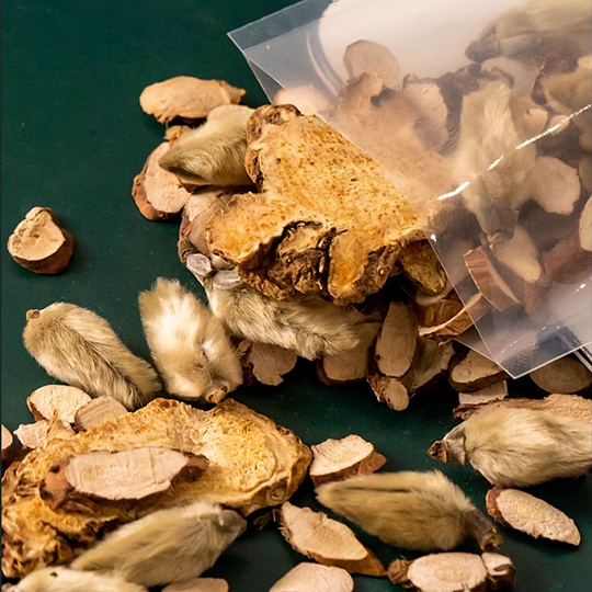 3. Atractylodes: Dries dampness by strengthening the spleen, addressing the root cause, while also assisting to expel external pathogens.
