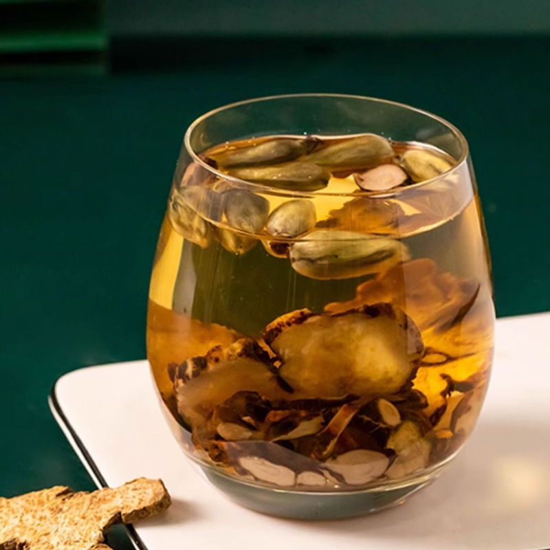 2.  Bring to a boil over high heat. Once boiling, reduce to low heat for slow decoction. After 10-15 minutes of low-heat decoction, uncover the pot and add Acorus tatarinowii rhizome. Continue simmering for 5-10 minutes. Turn off the heat and strain out the first decoction.
