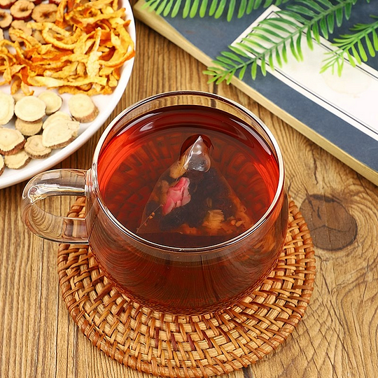Dandelion, Licorice, Kudzu Root, Dandelion Root, Gardenia, Mulberry Leaf, Tangerine Peel, Poria, Cassia Seed, Chinese Yam, Hawthorn, Buckwheat, Bamboo Leaf, Red Date, Double-Petaled Red Rose, Lily, Chrysanthemum, Small Ginseng Slices (cultivated for under 5 years), Huoshan Dendrobium Stem (cultivated), Purslane, Corn Silk